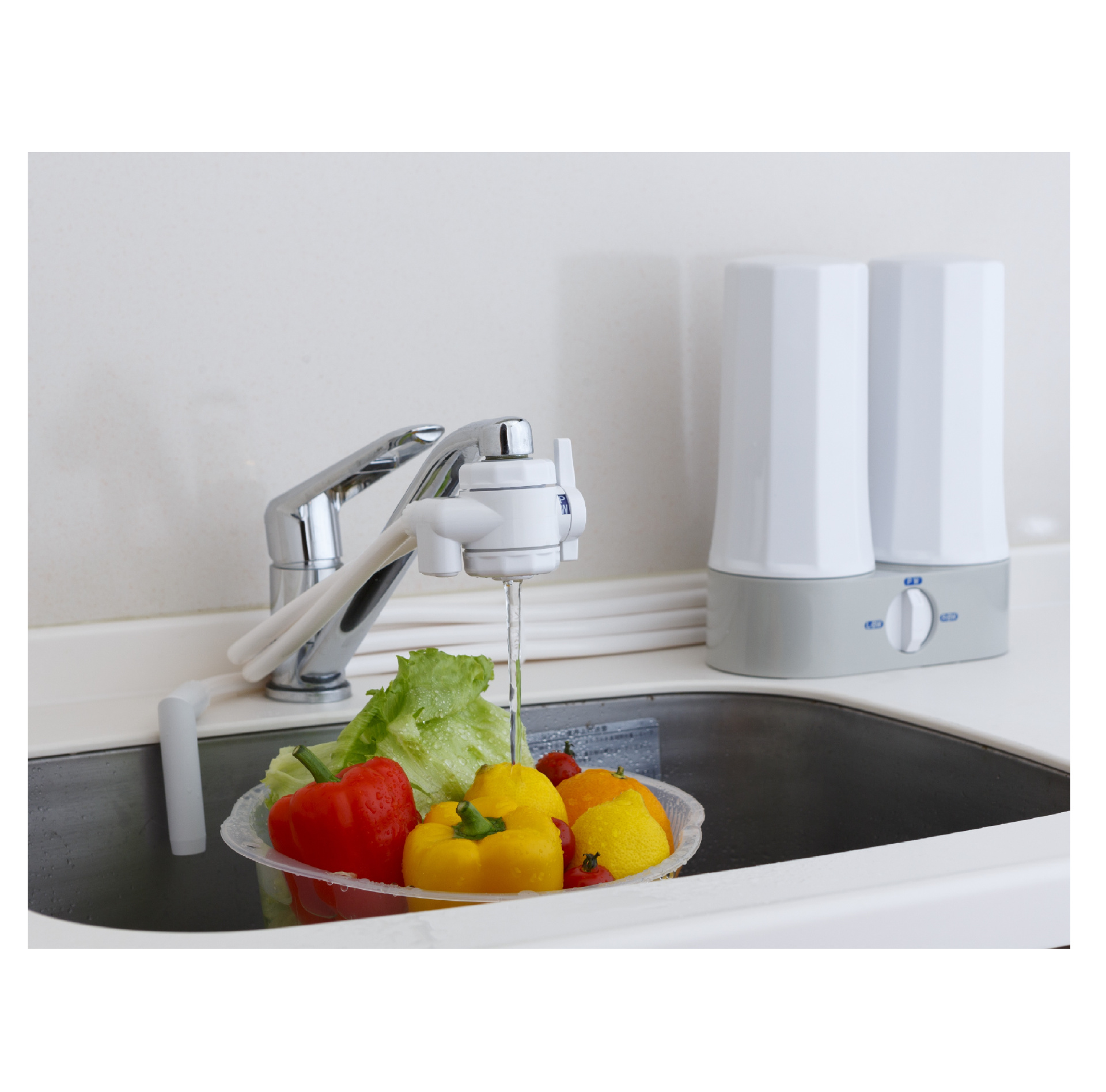 -Sanitize the inside of the filter by using the captured residual chlorine of the tap water.